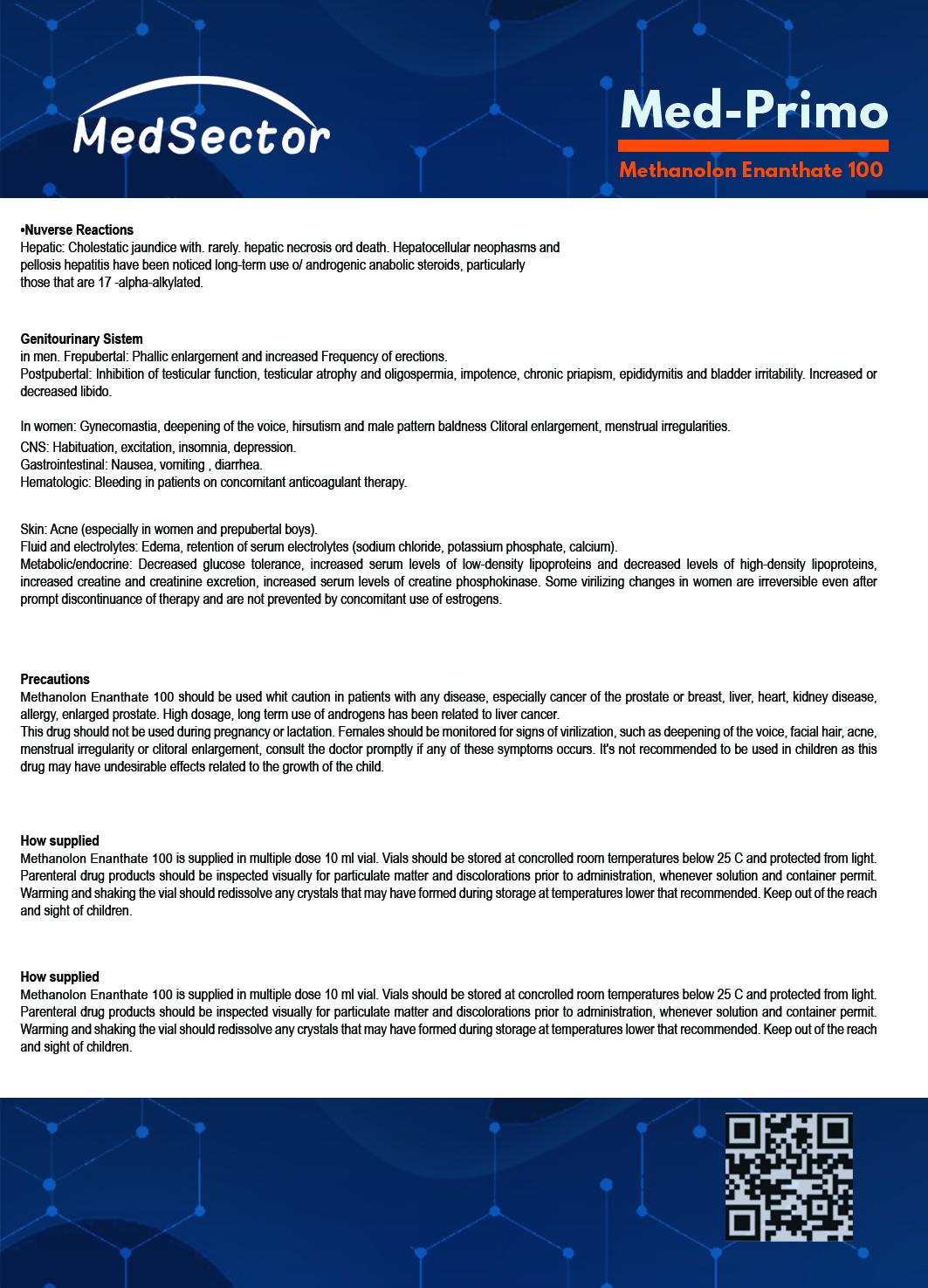 / Med-Primo Methanalon Enanthate 100